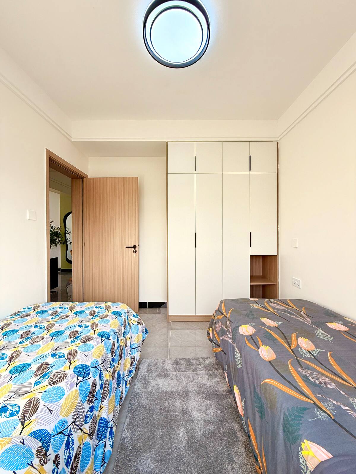 The second bedroom is designed with flexibility in mind, featuring two children’s beds that can be combined into one larger bed if needed. Inside, you’ll enjoy a spacious living area with a private balcony, orthopedic mattresses for restful sleep, modern décor, and a 50-inch smart TV for entertainment.